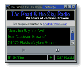 そうだ興奮して URL を書いてませんでした. "The Road & the Sky Radio" の URL は, http://members.xoom.com/JBRadio/ です.僕のサイトのリンクのページに,受信のための簡単なメモを書いてみました.これから聴いてみようという人は読んでみてください.