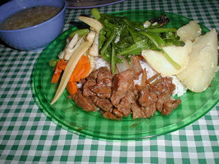 晩飯はキャンプ5の食堂で.これは結構うまかった.そうそう食堂には電気がついていた.